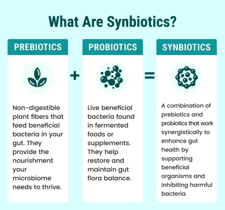 A few products also contain prebiotics (typically soluble fiber or insoluble carbohydrates) that feed the probiotics.