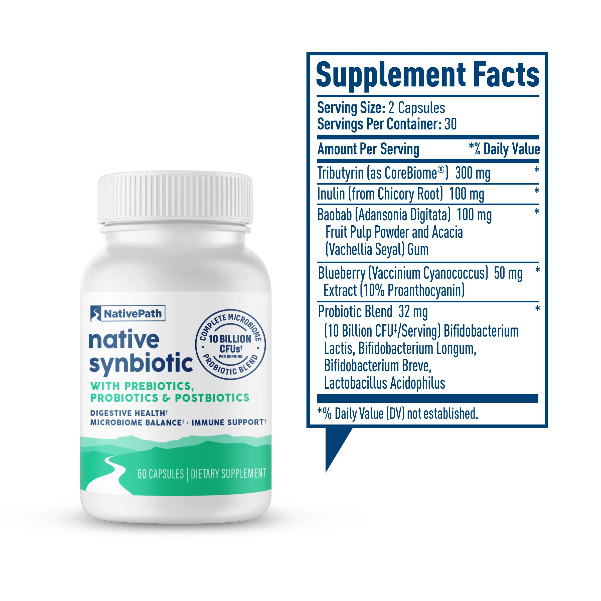 Each bottle of Native Synbiotic contains 30 servings.