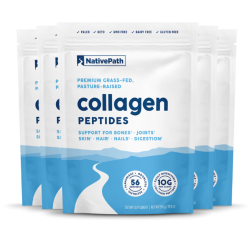 Go ahead and order your 12, 6, 3, or 1 bag supply of NativePath Grass-Fed Collagen by choosing one of the packages you see below.