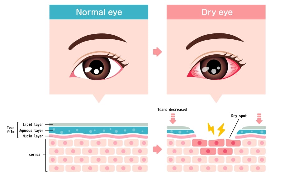 When this layer is disrupted, the eyes cannot maintain proper lubrication, which triggers dry eye symptoms like burning, itching, and the feeling that something is in the eye.