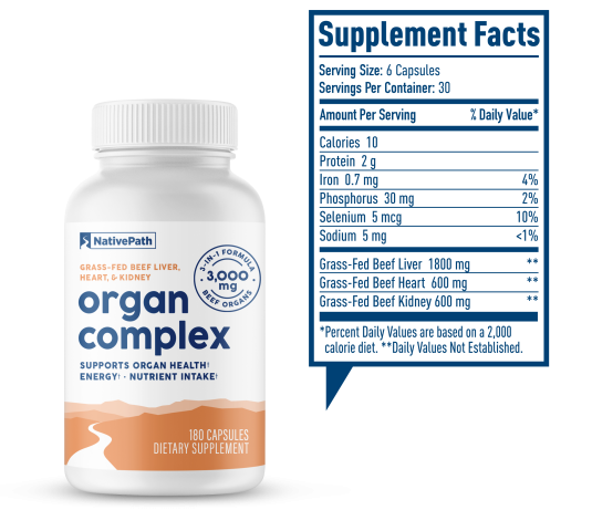 If meeting your daily nutrient needs is a struggle for you, taking 6 capsules of NativePath Organ Complex per day is the perfect way to supplement high-quality nutrients in your diet.