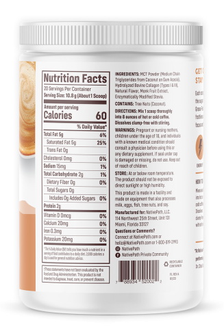 Our MCT & Collagen Coffee Creamer contains 20 servings.