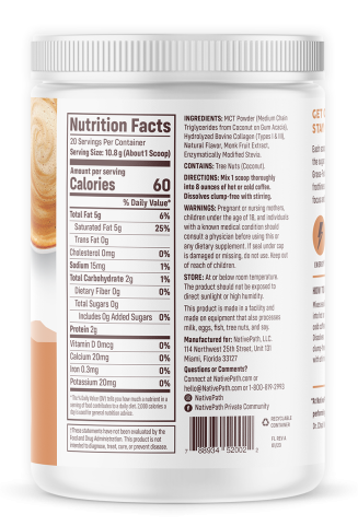Our MCT & Collagen Coffee Creamer contains 20 servings.