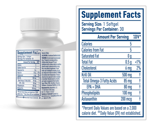 INGREDIENTS: Krill Oil, Phospholipids, Astaxanthin.