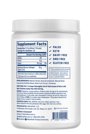 Each full-size jar of NativePath Peach Collagen contains 20 servings.