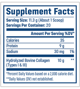Especially if you are over the age of 50, your collagen levels have likely already declined by a staggering margin of 30% (or more). That means you’ll require a collagen surplus (20 grams or more per day) just to bring your collagen levels back to baseline.