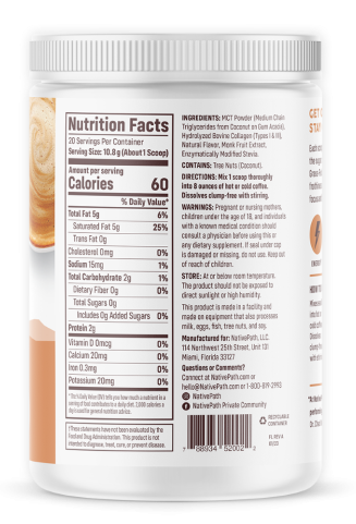 Our MCT & Collagen Coffee Creamer contains 20 servings.