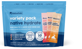 Native Hydrate is available in three flavors: Peach Mango, Mixed Berry, and Tangerine, all made naturally sweet and with fruity flavors that some people say taste like a refreshing popsicle or sherbet.