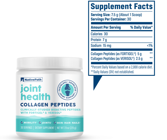 The bottom line is this: For folks who are primarily concerned about their joint health, using 2 servings of NativePath Original Collagen Peptides per day, in addition to 1 scoop of Joint Health Collagen, can be extremely helpful for flooding the joint structures with extra collagen and accelerating the support of your cartilage and joints.