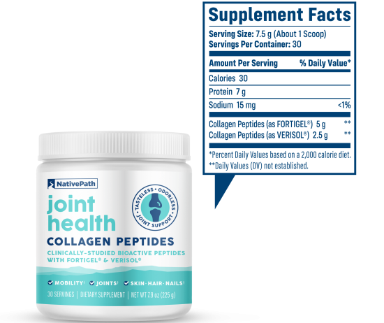 The bottom line is this: For folks who are primarily concerned about their joint health, using 2 servings of NativePath Original Collagen Peptides per day, in addition to 1 scoop of Joint Health Collagen, can be extremely helpful for flooding the joint structures with extra collagen and accelerating the support of your cartilage and joints.