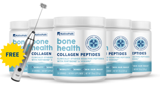 Finally, our best-selling bone support is back in stock! For a limited time, you can try NativePath Bone Health Collagen Peptides for up to 57% off (retails for $62.99) while supplies last - plus get a FREE Frother & FREE shipping: