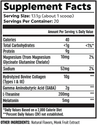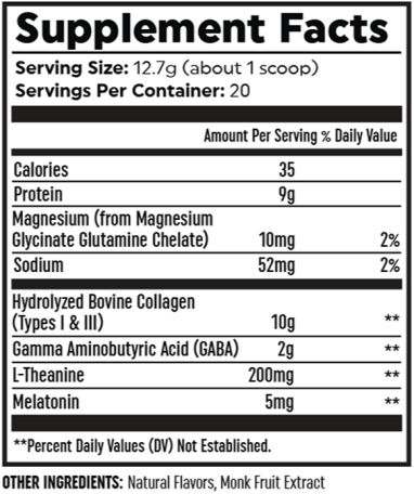Each serving contains a perfect dose of 4 natural sleep-support ingredients in a unique collagen peptide powder formula — allowing for faster absorption, and more effective delivery to your bloodstream and tissues.