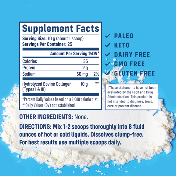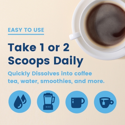 Stir 2 scoops a day into your coffee, water, tea, or morning shake to promote stronger bones, joints, skin, and hair.