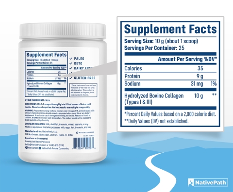 Each full-size jar of NativePath Grass-Fed Collagen contains 25 servings.