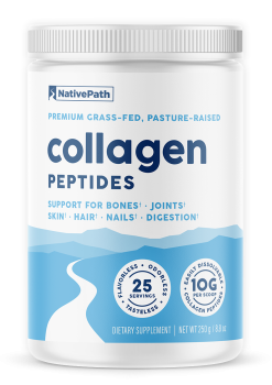 To effectively restore collagen levels in the body, simply take 2 scoops of NativePath Grass-Fed Collagen each day.