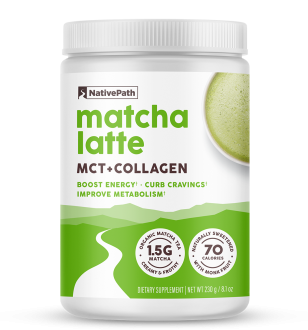Furthermore, the healthy MCT fats in NativePath Matcha Collagen Latte slow the absorption of caffeine, providing smoother crash-free energy.