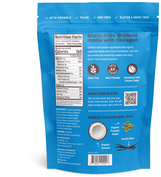 Everyone who tries NativePath Grain-Free Collagen Granola absolutely loves it. However, if for some reason you aren’t completely satisfied, we offer a 365-day “Feel Good” Guarantee.