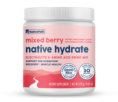 Unlike other commercial hydration products, Native Hydrate contains high-quality amino acids that are proven to be the optimal way to hydrate, along with subtle yet effective amounts of electrolytes.