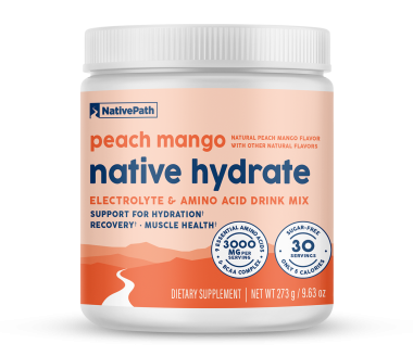 Unlike other commercial hydration products, Native Hydrate contains high-quality amino acids that are proven to be the optimal way to hydrate, along with subtle yet effective amounts of electrolytes.
