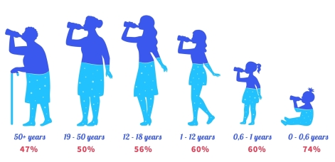 Studies show up to 95% of people over the age of 71 are NOT consuming enough fluid on a daily basis.