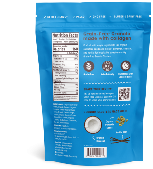 Everyone who tries NativePath Grain-Free Collagen Granola absolutely loves it. However, if for some reason you aren’t completely satisfied, we offer a 365-Day Money-Back Guarantee.