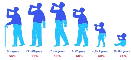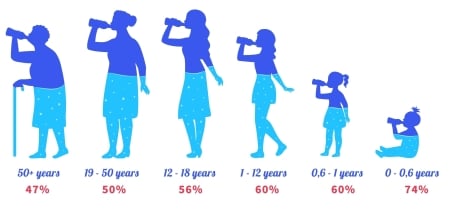 Studies show up to 95% of people over the age of 71 are NOT consuming enough fluid on a daily basis.