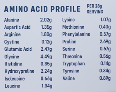 It's only rich in three amino acids—glycine, proline, and hydroxyproline—which are important for skin, joint, and connective tissue health.