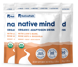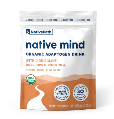 Native Mind not only contains a potent dose of 100% Organic lion's mane, but it also contains stress-relieving adaptogens – rose hips & rhodiola – to reduce stress and further enhance mental clarity, focus and nerve health.