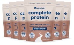 Though it is sourced from grass-fed beef, it does NOT taste like beef! Complete Protein is available in two flavors: Chocolate and vanilla – both are made using natural flavors that people say taste like a decadent dessert.