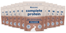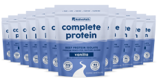 Though it is sourced from grass-fed beef, it does NOT taste like beef! Complete Protein is available in two flavors: Chocolate and vanilla – both are made using natural flavors that people say taste like a decadent dessert.