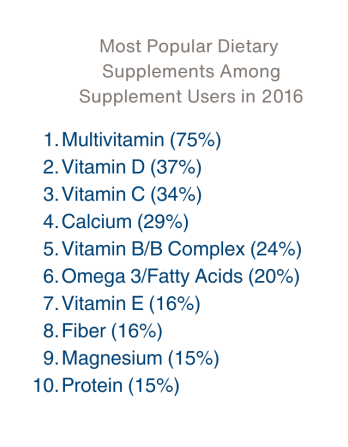 Most Popular Dietary Supplements Among Supplement Users in 2016