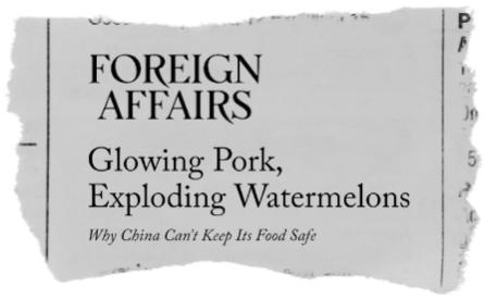 The article goes on to cover several cases of mass food-poisoning, deadly baby formula, glow-in-the-dark pork filthy with phosphorescent bacteria, exploding watermelons doused in too much growth hormone, and fake eggs made from a stew of weird chemicals.